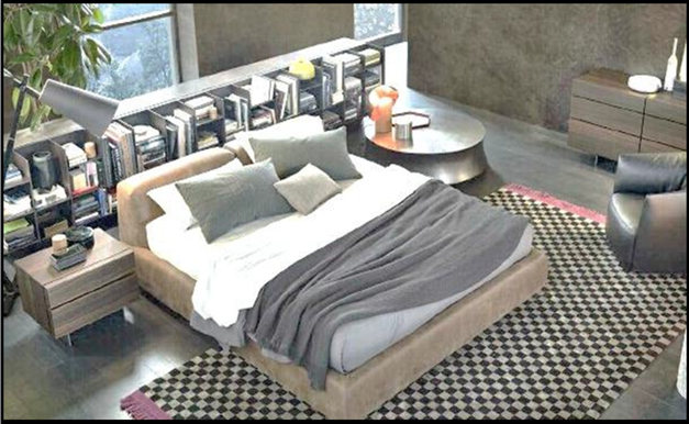 [LT460] Bed (Faux Leather, Grey, Queen, Wood)